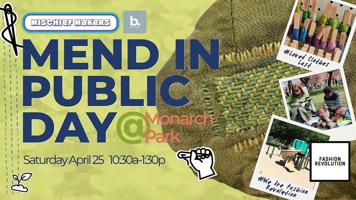 Info: We'll be at Monarch Park to enjoy the outdoors, mend some clothes, and help disrupt the fast-fashion industry stitch by stitch. We'll have materials and tools with us to share with anyone who's in need.