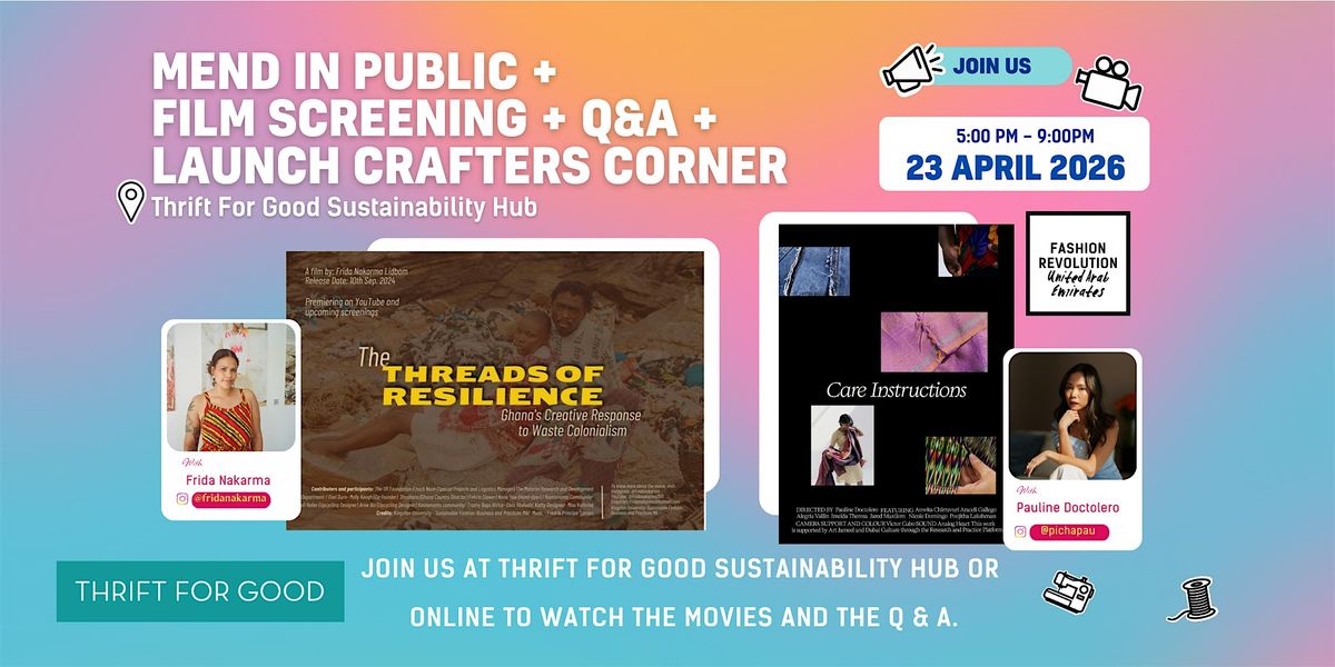 Join us for an exciting day of activations at Thrift for Good’s Sustainability Hub, online or IRL 🪡 Stitch and chat at Mend in Public, watch film screenings of The Threads of Resilience by Frida Nakarma @fridanakarma & Care Instructions by Pauline Doctolero @pichapau, and join us for a Q&A and the launch of Crafters Corner. Link in our bio to sign up!