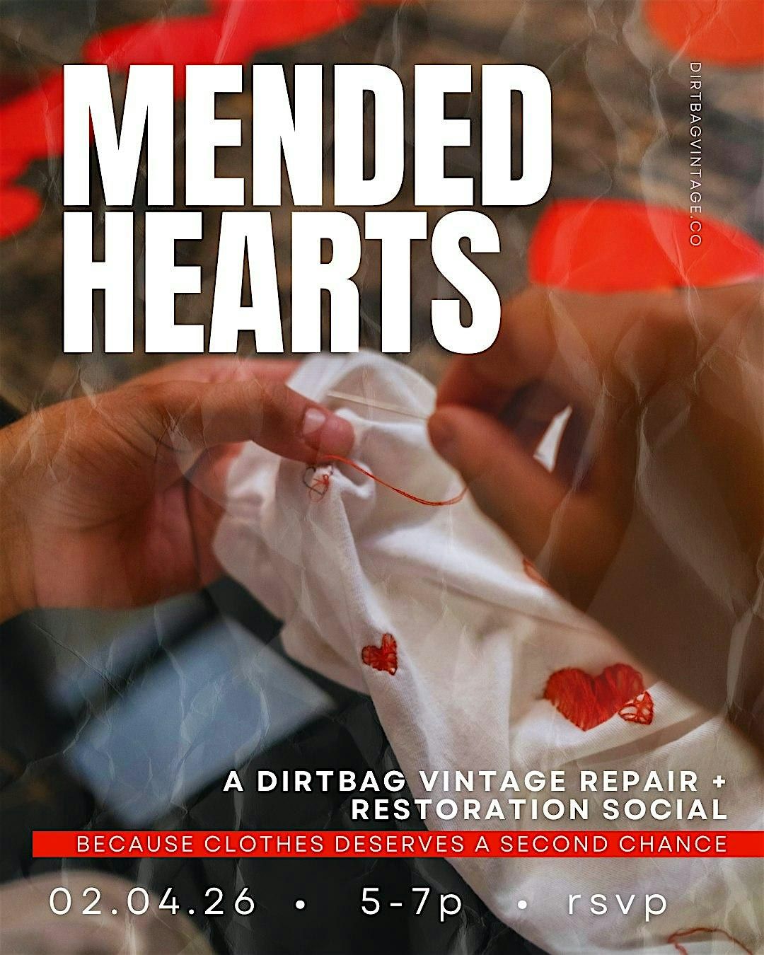 Come join us at Dirtbag Vintage and Thrift for a fun evening of repairing, upcycling, and rehabbing your favorite clothes and sharing practical repair tips. Let's show our clothes and froends some love this Valentine's season!