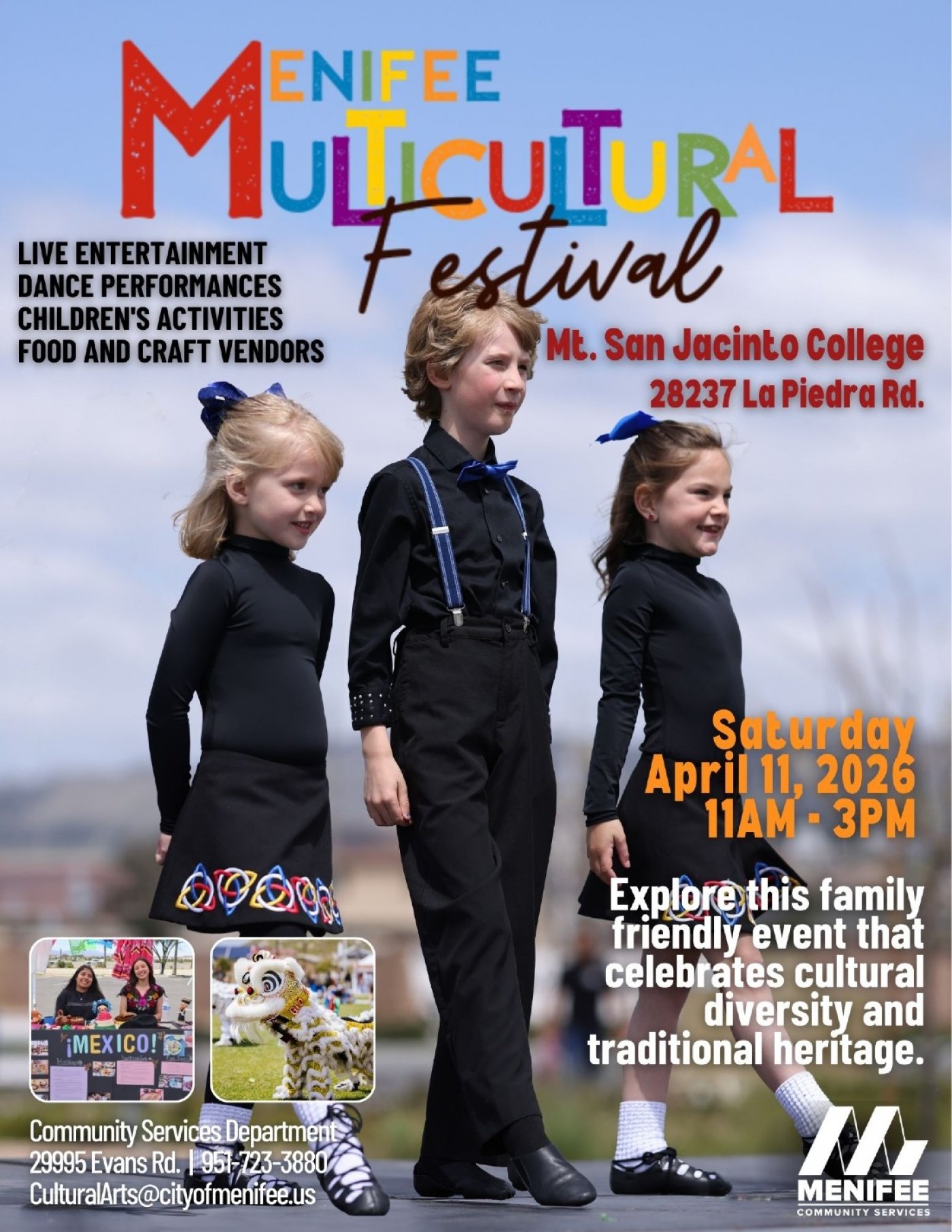Multicultural Festival – Celebrate Menifee’s diverse community at our annual Multicultural Festival on Saturday, April 11, from 11 a.m. to 3 p.m. at Mt. San Jacinto College’s Menifee Campus (28237 La Piedra Road). From vibrant performances to global flavors and traditions, this event highlights the beauty of diversity by showcasing cultures from around the world. It is free to attend and an opportunity to eat, dance, learn, and celebrate our community.
