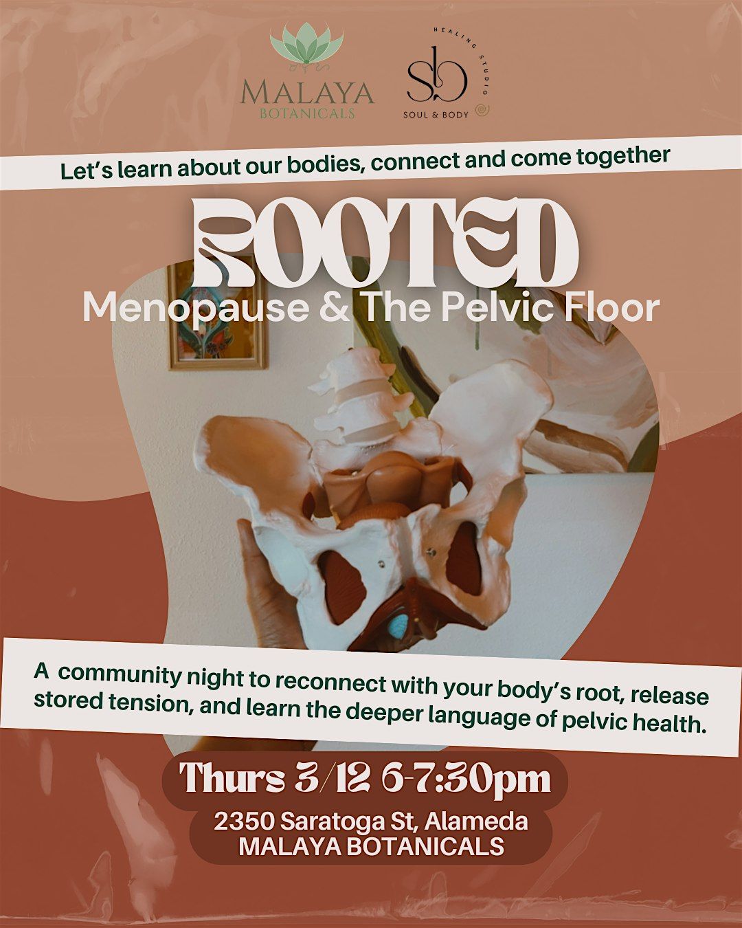 Join us for Rooted: Menopause & The Pelvic Floor, a community evening to reconnect with your body, release stored tension, and learn the deeper language of pelvic health.