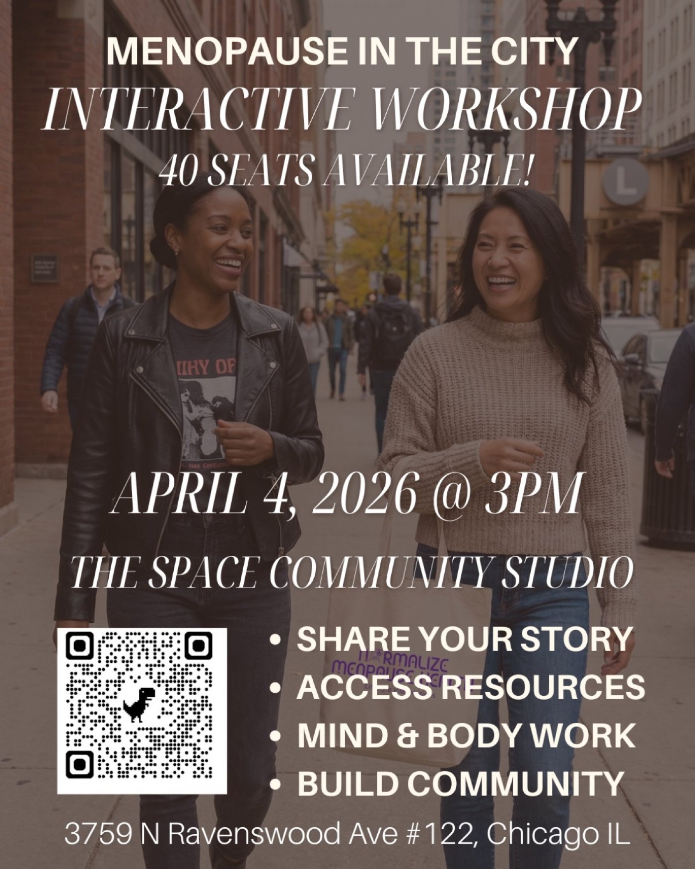 Celebrate by empowering yourself at Menopause in The City, our interactive Menopause Workshop in Chicago. This 2.5-hour session is designed to help women prepare their bodies and minds for perimenopause and menopause with knowledge, confidence, and practical tools.