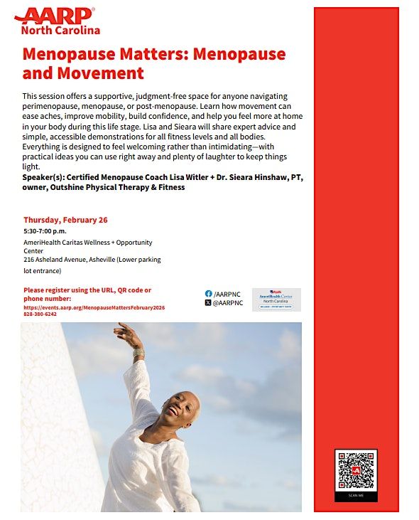 Please register using the URL, QR code or phone number: https://events.aarp.org/MenopauseMattersFebruary2026