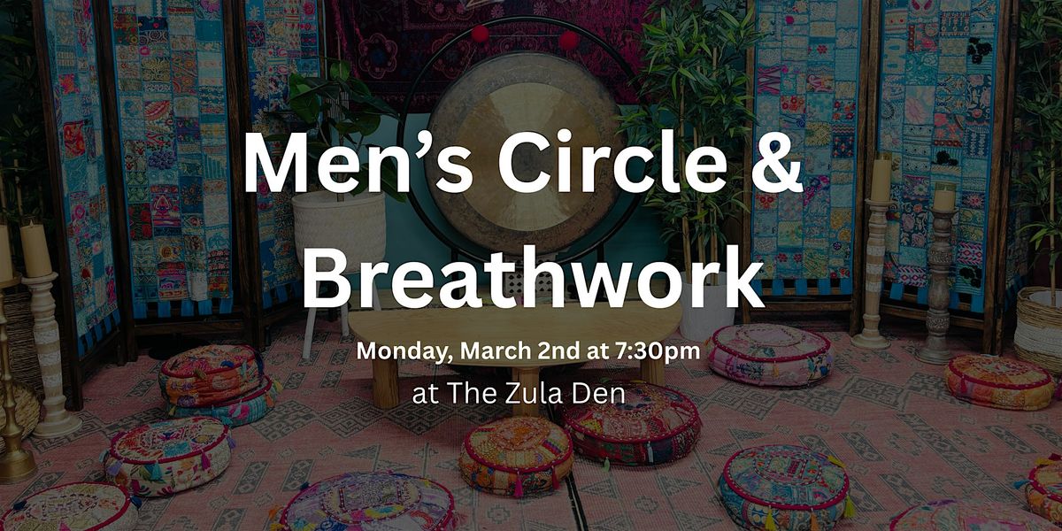 Join us Monday, March 2nd at Zula Den in West Adams for an evening of breathwork and a men’s circle. We’ll start with introductions and a guided breathwork session, then move into sharing. Everyone will have a chance to speak, and a few men will receive focused support from the group.
