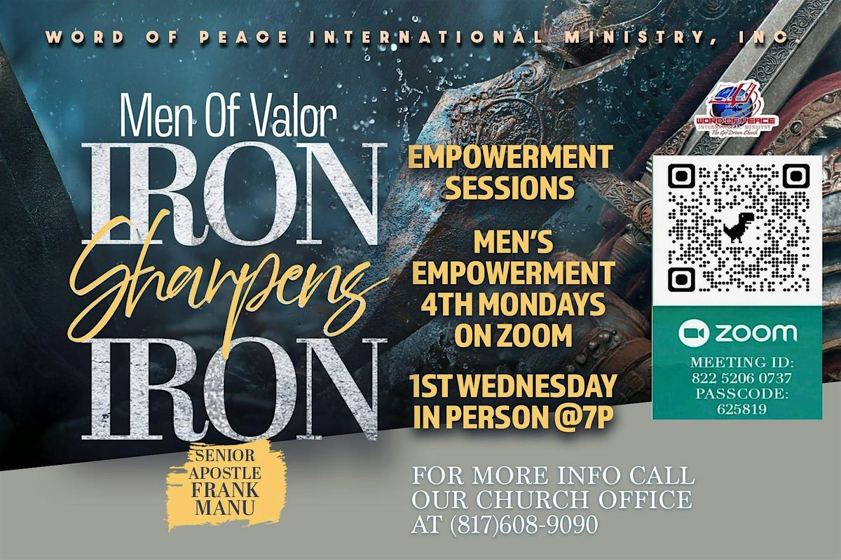 Open to all men - Join the Word of Peace DoMENion Legacy Builders for Men's Empowerment Mondays, each 4th Monday of the month at 7pm!