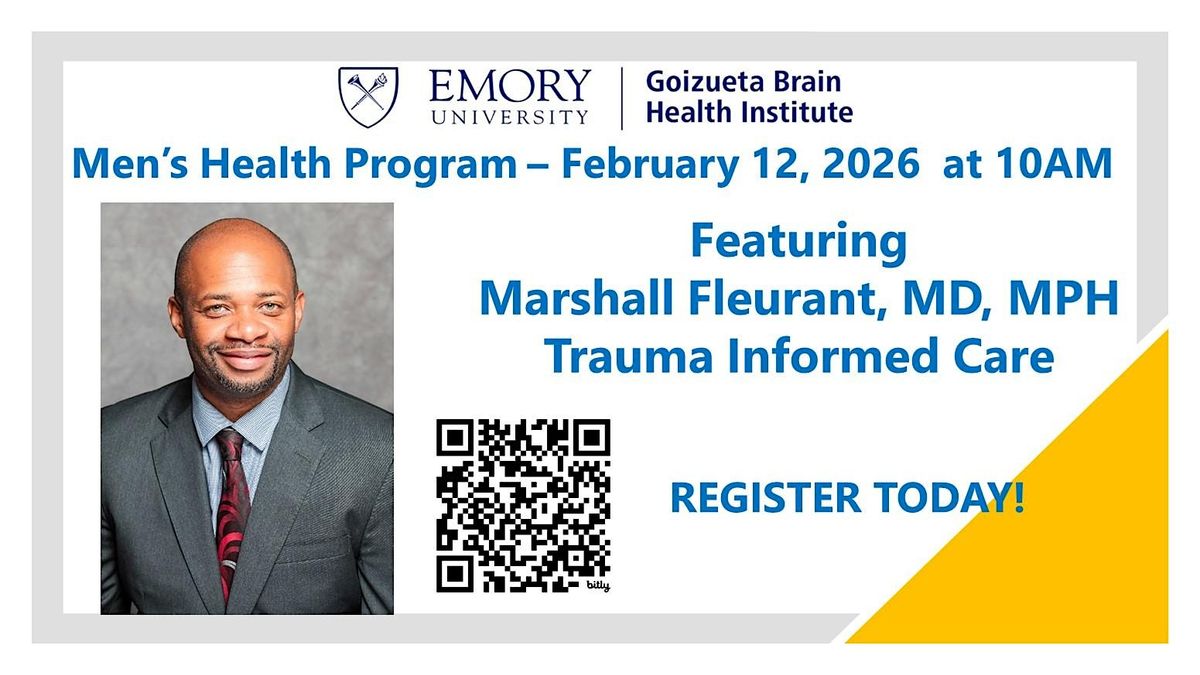 Men, make plans to attend the Men's Health Program at the Emory Brain Health Center in Atlanta. Register today! On February 12th, we will feature Dr. Marshall Fleurant who will discuss Trauma Informed Care. Don't miss out!