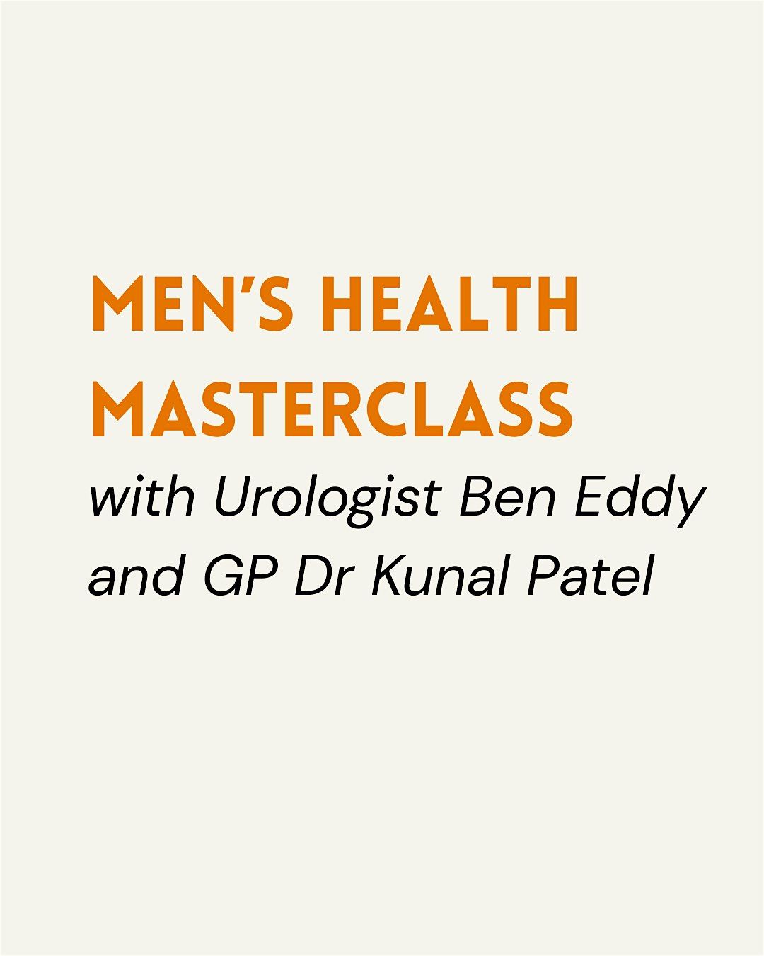 Join us for an evening with Consultant Urologist Ben Eddy and GP Dr Kunal Patel for a Men’s Health Masterclass. You’ll learn about common men’s health concerns, the importance of early detection, and practical steps to support long-term wellbeing.