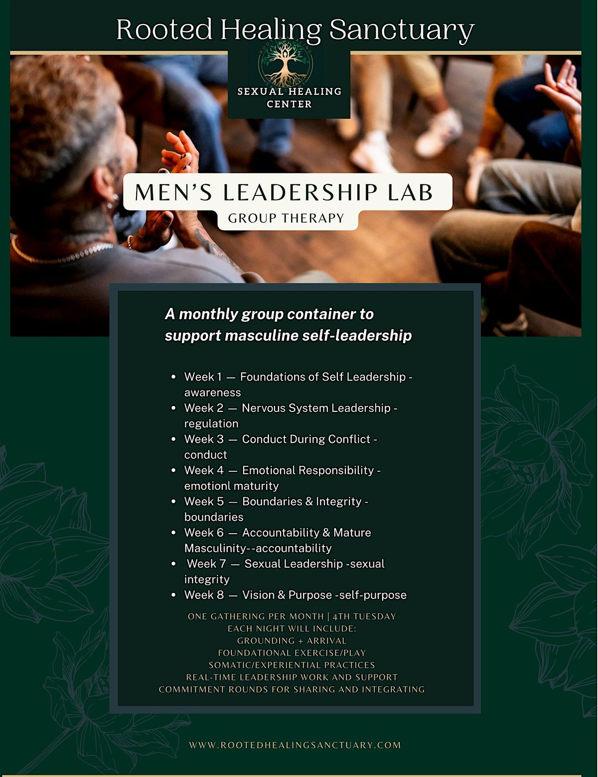 • A private men’s group for ongoing connection + accountability