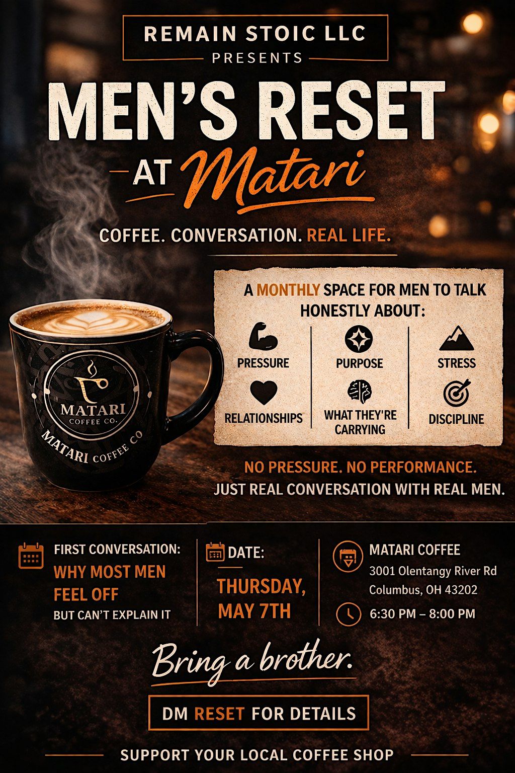 This is a monthly space for men to have real conversations about life and what they’re carrying—without pressure, performance, or pretending.