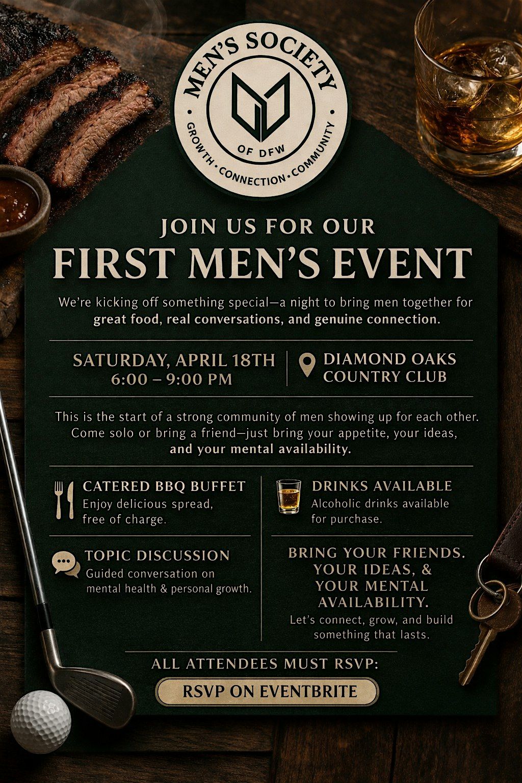 We’re kicking off something special with our first-ever Men’s Event at Diamond Oaks Country Club on April 18th from 6:00–9:00 PM and this is just the beginning.