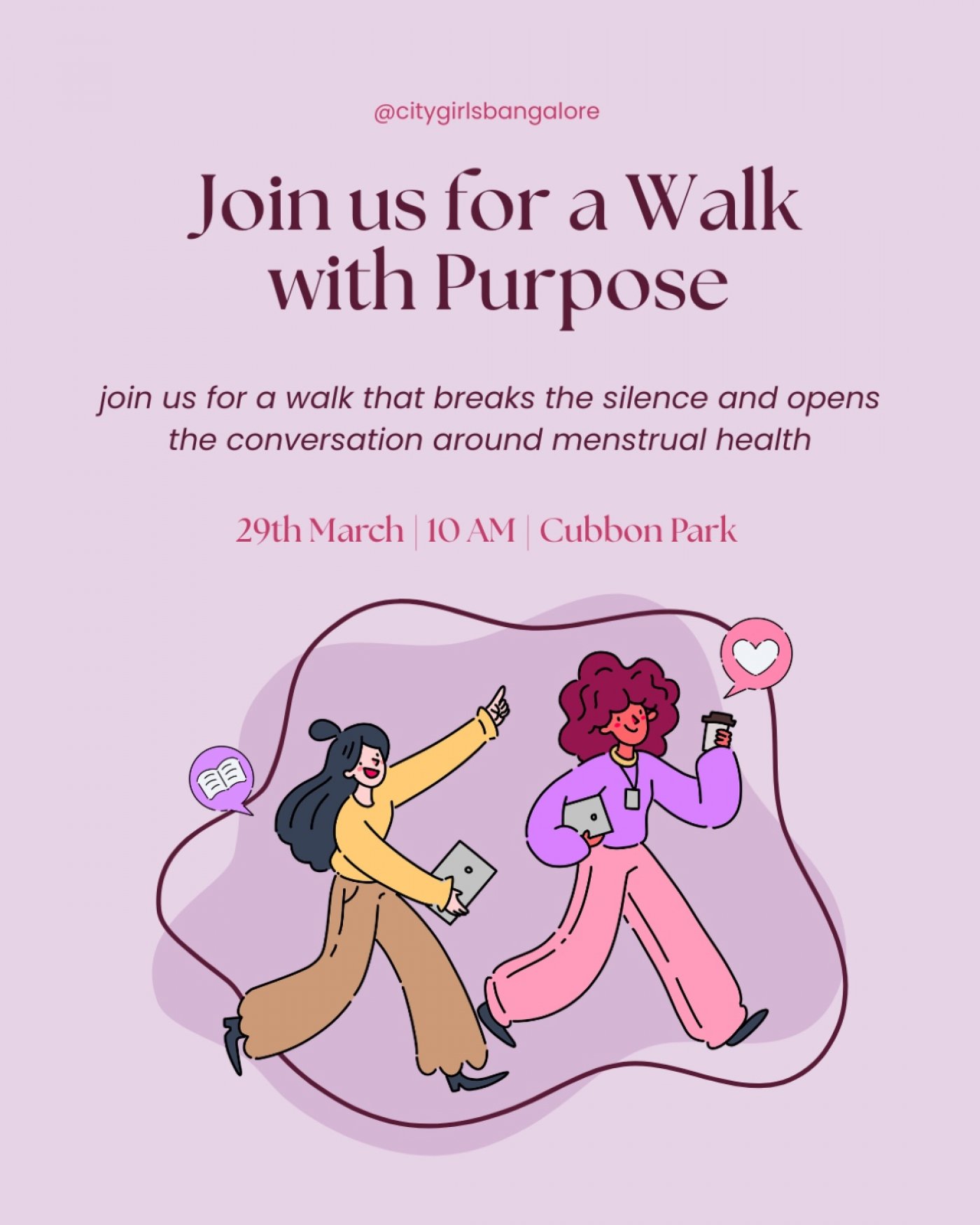 Join us for a relaxed, feel-good walk through Cubbon Park where we ditch the awkward silence and replace it with fun prompts, card games, and real conversations about that time of the month.