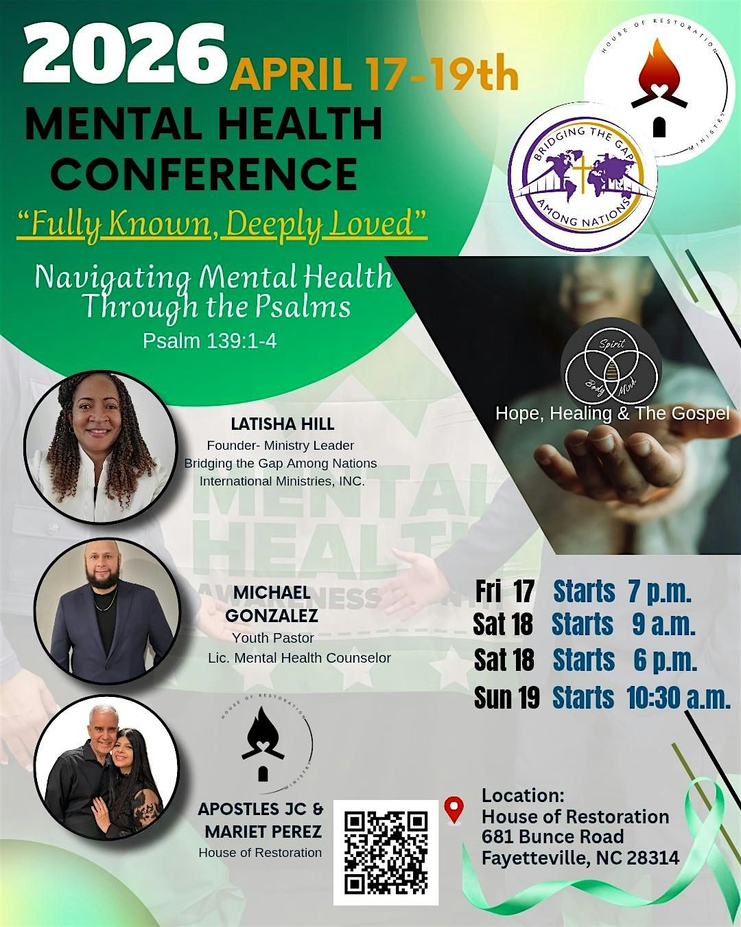 We are honored to have Pastor LaTisha Hill as our guest speaker. She is the Ministry Founder and Leader of Bridging The Gap Among Nations International Ministries Incorporated. This year marks the fourth edition of her Annual Mental Health and Wellness Conference with House of Restoration. Pastor LaTisha is not only a respected figure in the ministry but also considered a part of our church family.
