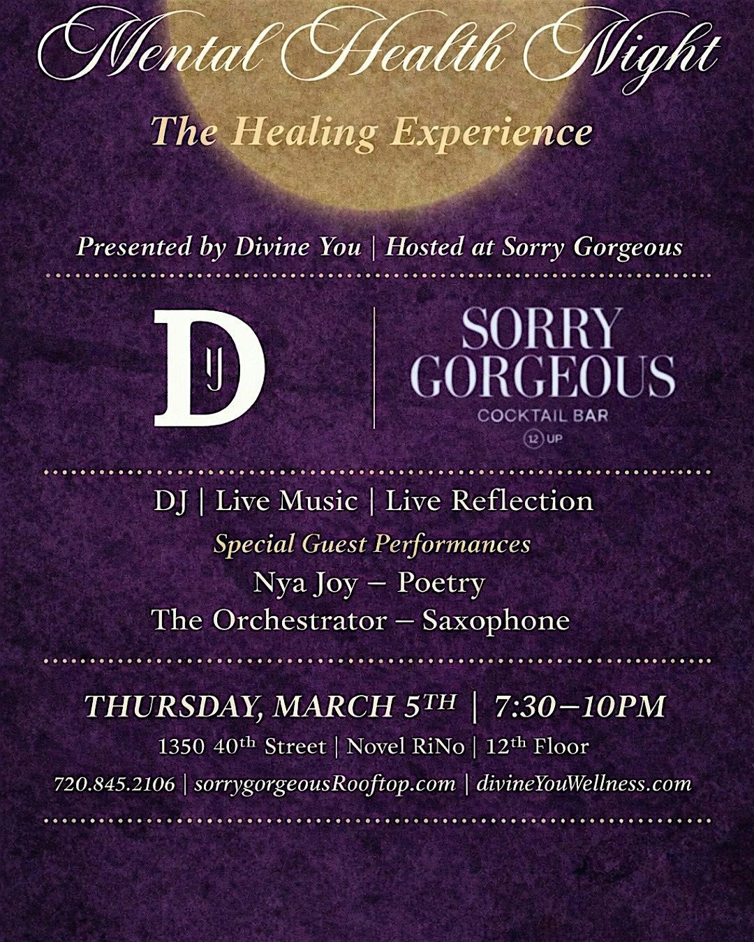 Come as you are sit, listen, feel, reflect, and be present. Whether you’re actively working on your mental health or simply curious, this night is for you.