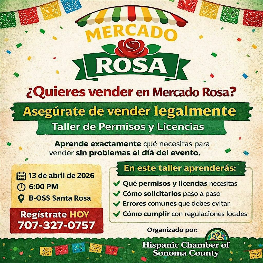 Este taller es para vendedores de comida, productos y cualquier persona interesada en participar en Mercado Rosa. Ven listo para obtener respuestas claras y salir con un plan listo para ejecutar.