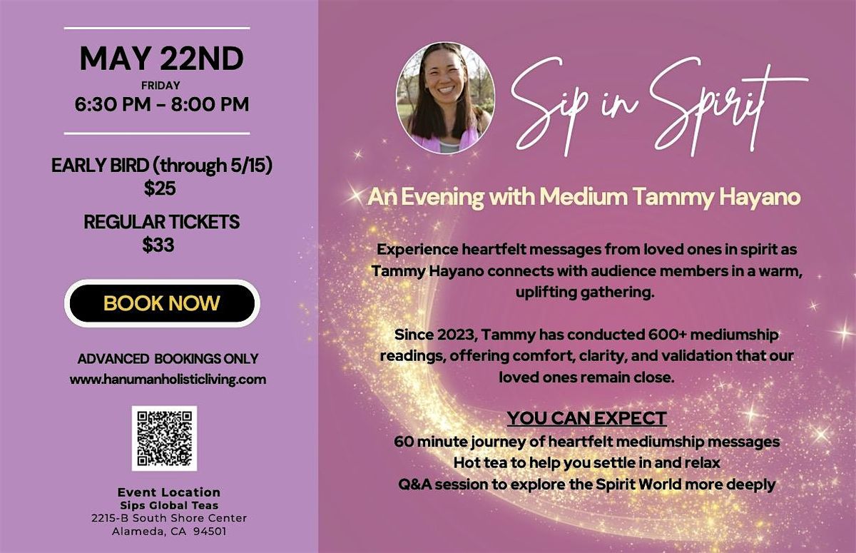 We are delighted to have this event at Sips Global Teas at the South Shore Shopping Center in Alameda, CA! Join us for a cozy cup of tea as we sit and sip with the spirit world.