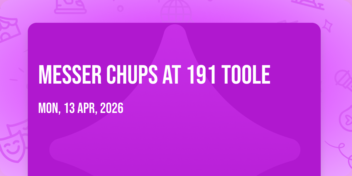 🎉 Welcome to Messer Chups at 191 Toole, where the impossible becomes possible and dreams take flight! 🏛️ Join us at 191 Toole in the heart of Tucson, AZ for an event that will redefine your expectations. 📅 On April 13th, 2026 at 08:00 PM, witness the transformation of space and time into something truly magical. ✨ It's a curated experience combining the best of innovation, entertainment, and community spirit, creating moments that will be remembered for years to come. Whether you're a first-time visitor or a seasoned enthusiast, prepare to be amazed. 🎊 Book now to ensure your place in this unforgettable experience!