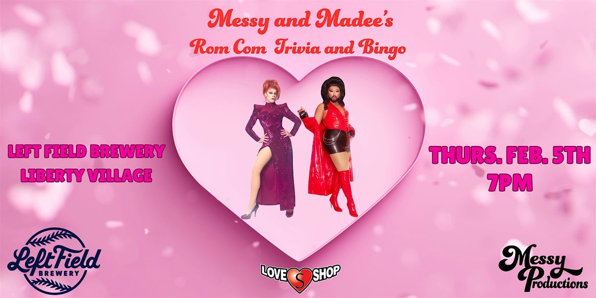 Calling all rom-com lovers! Join Messy Margaret and Madee Lovegood on Thursday, February 5th for a delightfully unhinged afternoon of Romantic Comedy Drag Bingo & Trivia — the perfect excuse for a fun night out filled with laughs, love, and camp.