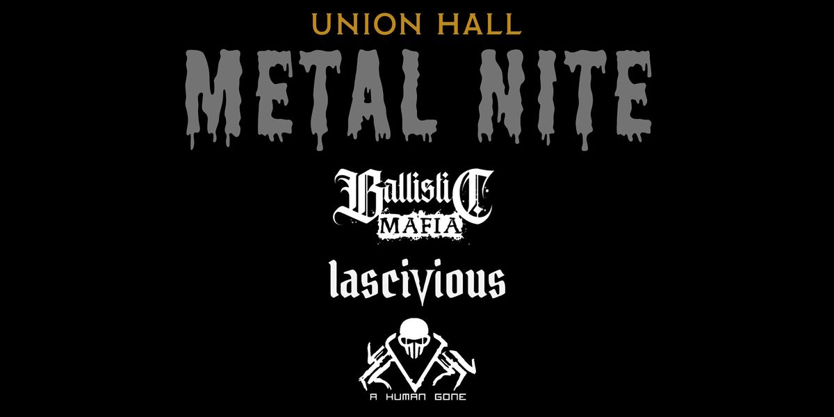 Get ready for a night of headbanging with performances by Ballistic Mafia, Lascivious, and A Human Gone! Union Hall is the place to be for all metalheads looking to rock out and have a great time. Don't miss out on this epic event!