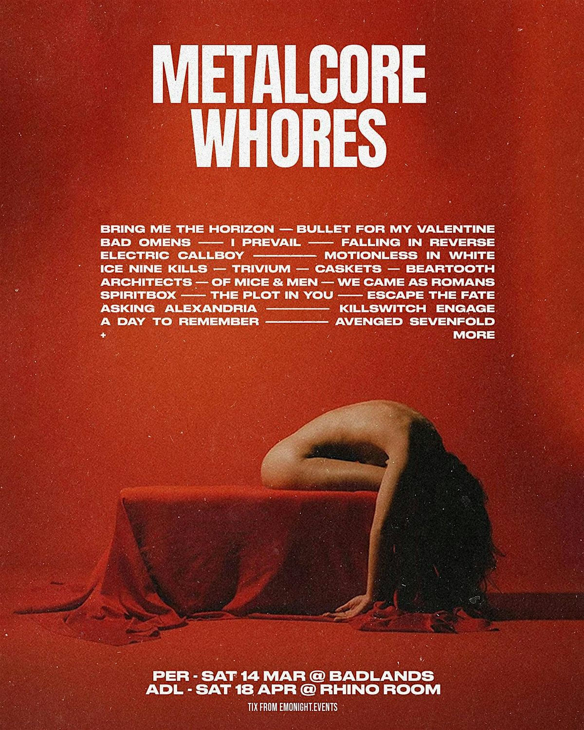 BRING ME THE HORIZON / BULLET FOR MY VALENTINE / BAD OMENS / I PREVAIL / FALLING IN REVERSE / ELECTRIC CALLBOY / MOTIONLESS IN WHITE / ICE NINE KILLS / TRIVIUM / CASKETS / BEARTOOTH / ARCHITECTS / OF MICE & MEN / WE CAME AS ROMANS / SPIRITBOX / THE PLOT IN YOU / ESCAPE THE FATE / ASKING ALEXANDRIA / KILLSWITCH ENGAGE / A DAY TO REMEMBER / AVENGED SEVENFOLD + MORE