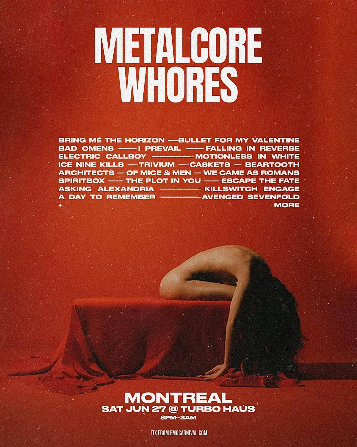 BRING ME THE HORIZON / BULLET FOR MY VALENTINE / BAD OMENS / I PREVAIL / FALLING IN REVERSE / ELECTRIC CALLBOY / MOTIONLESS IN WHITE / ICE NINE KILLS / TRIVIUM / CASKETS / BEARTOOTH / ARCHITECTS / OF MICE & MEN / WE CAME AS ROMANS / SPIRITBOX / THE PLOT IN YOU / ESCAPE THE FATE / ASKING ALEXANDRIA / KILLSWITCH ENGAGE / A DAY TO REMEMBER / AVENGED SEVENFOLD + MORE