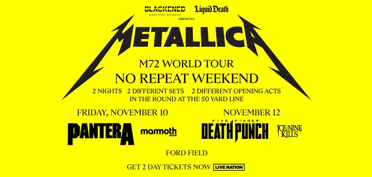 Metallica will roll through Chicago and stadiums across the world with their massive “M72” tour. While the tour is set to run in 2023 and 2024, fans can secure their spot in the stands on Friday.Join us on Friday, August 11, 2023 at 03:30 am for Metallica - 2 Day Pass, at Olympic Stadium - QC, Quebec, Canada, Tickets are now on sale and prices range from 120.00 USD to 8500.00 USD, Don't miss your chance, Get your tickets for Metallica - 2 Day Pass today!