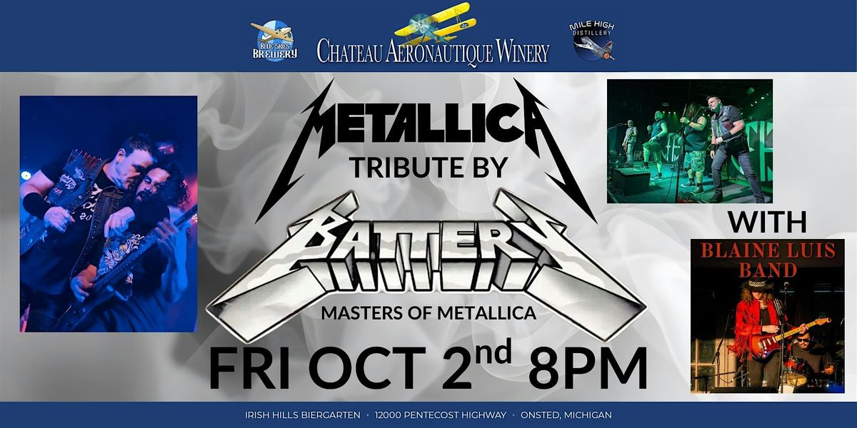 IF U are a fan of Metallica, U MUST SEE "BATTERY". "BATTERY" tours 52 weeks a year throughout the UNITED STATES, CANADA, PUERTO RICO & THE VIRGIN ISLANDS, MEXICO, CENTRAL & SOUTH AMERICA, UAE, THE MIDDLE EAST, & THE DOMINICAN REPUBLIC, lashing out the action in near-perfect Metallica style with all the energy, headbanging & musical precision that make Metallica the best metal band of all time!! Throw in lots of hair, some special Metallica lighting effects, strobes, fog, 5 foot stage-crosses & U get one hell of a night!!!!