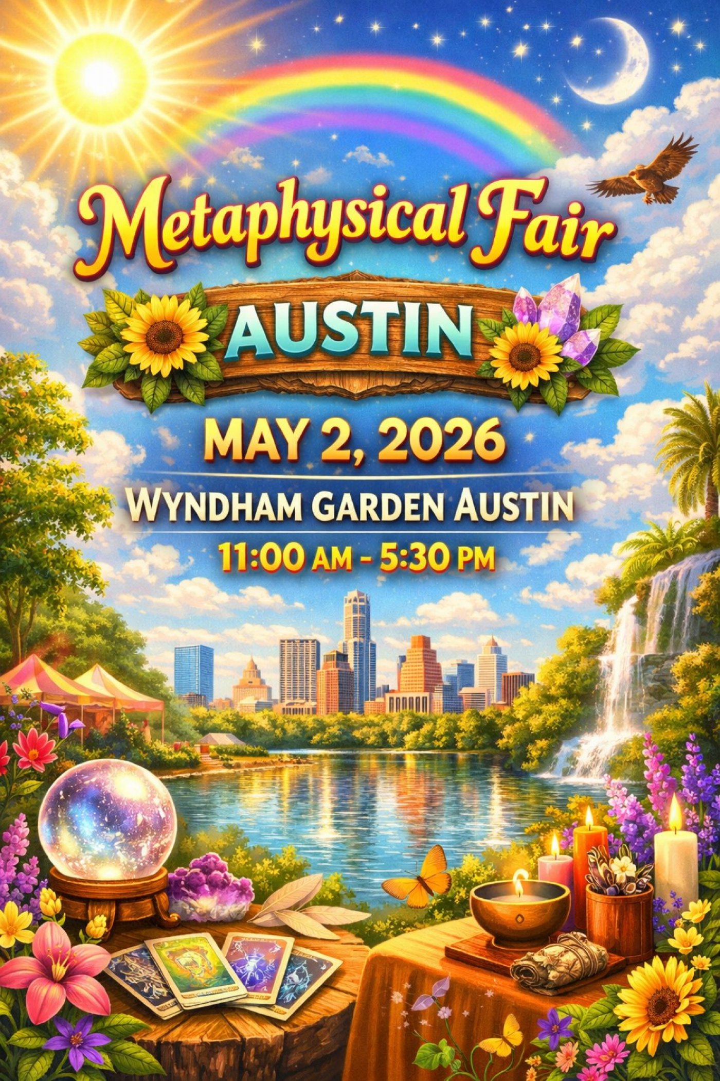 Join us for a magical day at the Metaphysical Fair for Austin May 2, 2026 at the Wyndham Garden Austin South from 11:00 AM – 5:30 PM! 🔮