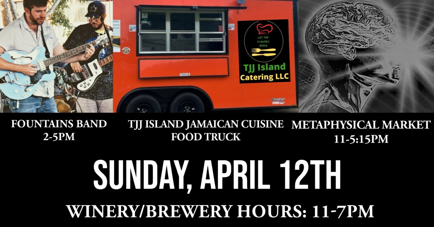 We have a special Sunday lined up on April 12th with fantastic live music, delicious food, a Metaphysical Market, and of course, award-winning wines/beers/ciders!