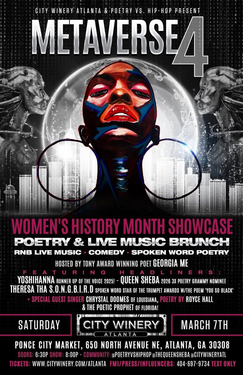 🌟 Be part of history at Metaverse 4 - Comedy & Spoken Word Poetry Brunch, an extraordinary gathering that will captivate your imagination! 🏛️ The prestigious City Winery - Atlanta in Atlanta, GA sets the stage for an unforgettable experience on March 6th, 2026 at 07:00 PM. ✨ They are bringing together the finest elements of entertainment and innovation to create moments that will take your breath away. From the moment you arrive, you'll be immersed in an atmosphere of wonder and excitement. 🎯 This carefully planned event ensures every guest experiences something truly special. 🎊 Early booking is recommended for this must-attend event of the season!http://maps.seatics.com/CityWinery-Atlanta_Endstage2_2021-10-28_2021-10-28_1008_10282021_113009_SVGC_tn.png