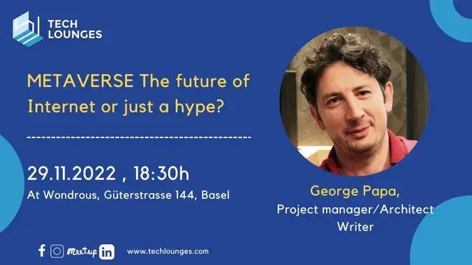 Five years before the Metaverse became a buzzword, our speaker George Papa published fictional books on the topic of the Metaverse ("The Tribe", and "The Code").