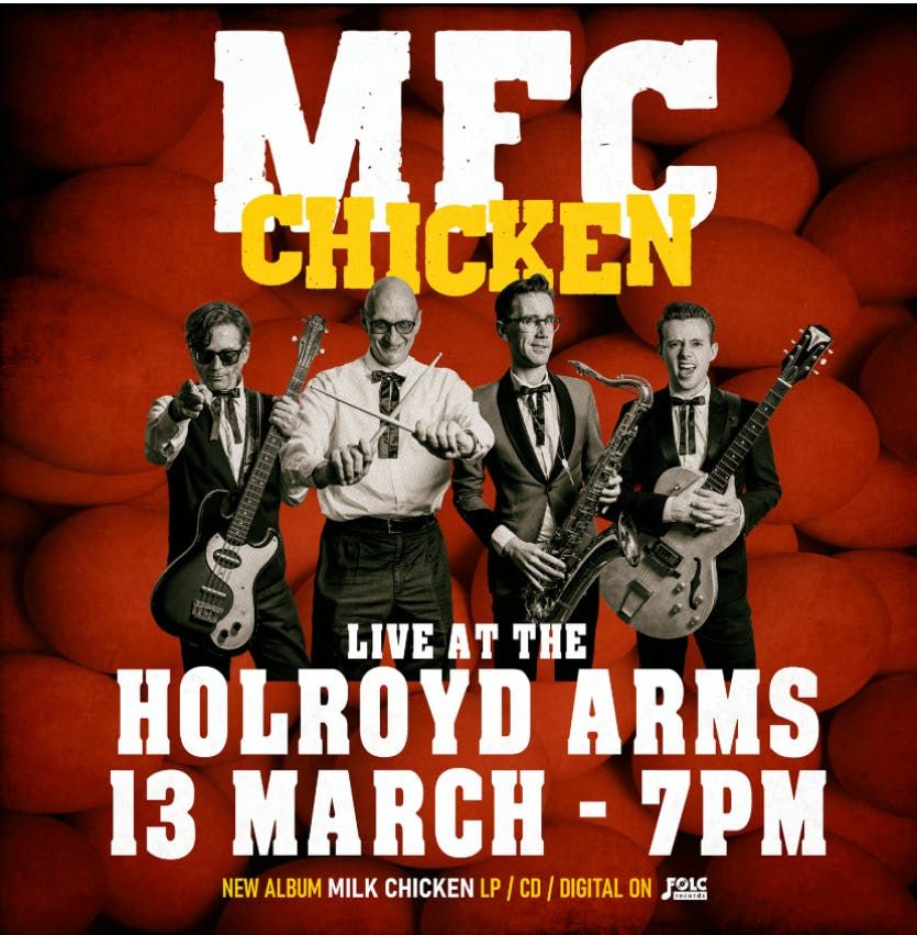 MFC Chicken is a high-energy rock and roll band known for their wild live performances. Starting in London, they serve up a mix of rhythm & blues, rockabilly, and garage rock with a side of fun and rebellion. Get ready to dance your feathers off!Disclaimer: