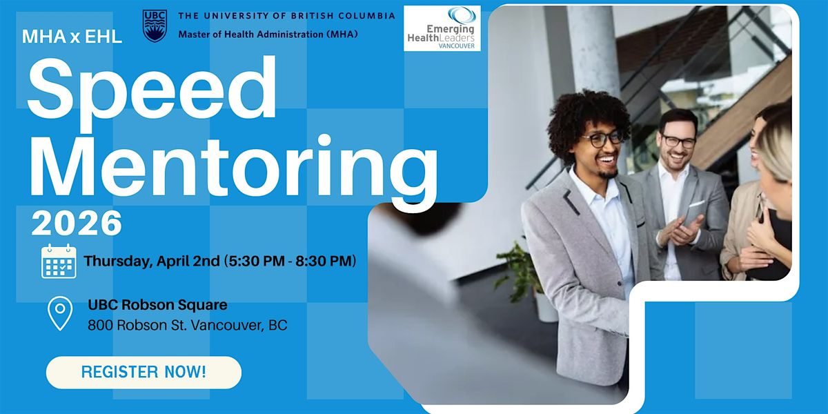 Hosted in partnership with the UBC Masters of Health Administration (MHA) and Emerging Health Leaders, we invite you to our second annual Speed Mentoring Event.
