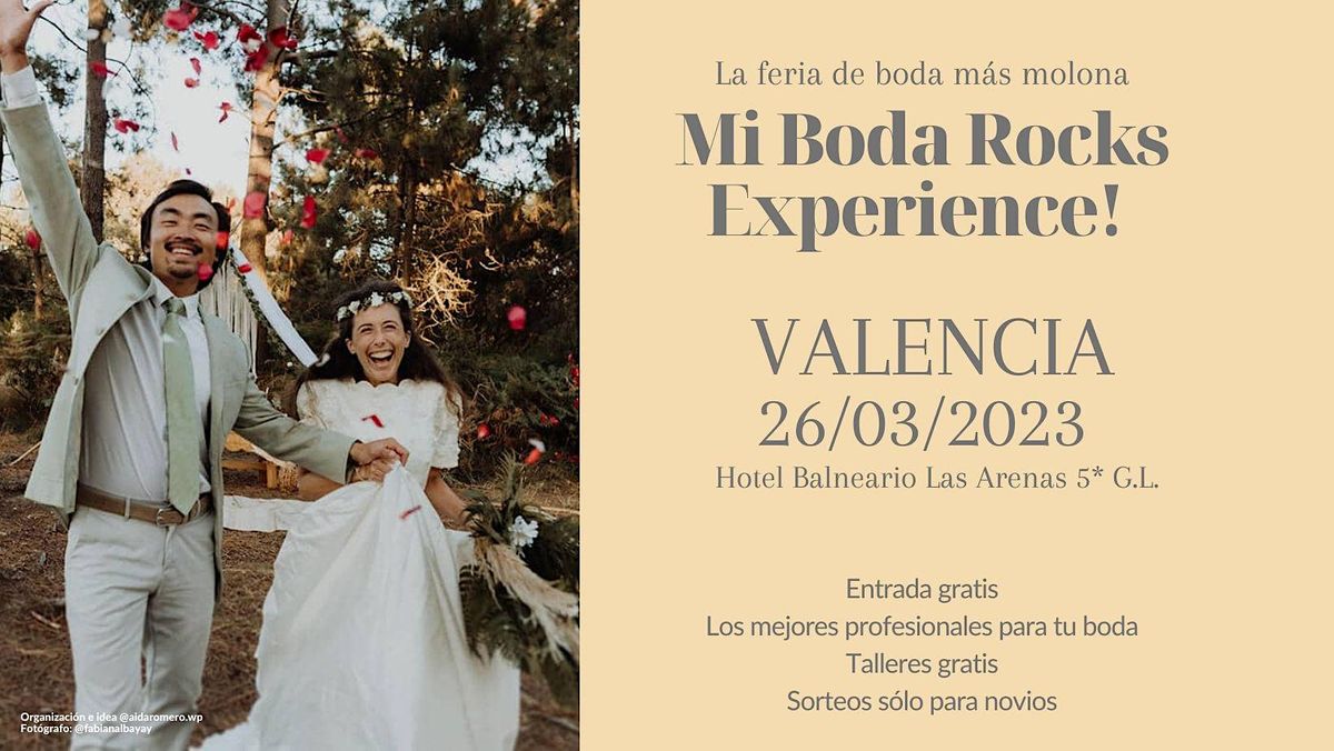 Entonces tienes una cita el domingo 26 de MARZO de 2023 en el showroom nupcial Mi Boda Rocks Experience VALENCIA que celebraremos en el Hotel Balneario Las Arenas 5* G.L.