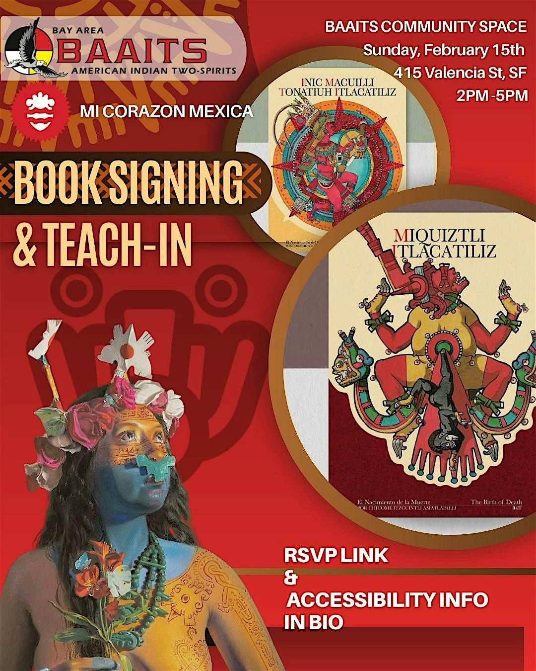 Join us at the BAAITS office in San Francisco for an intimate book signing and teach-in centered on Indigenous cosmology, living tradition, and cultural continuity. This gathering will feature the sharing of The Fifth Sun and The Birth of Death, alongside life-size reproductions of original hand-painted codices that formed the foundation of these works.