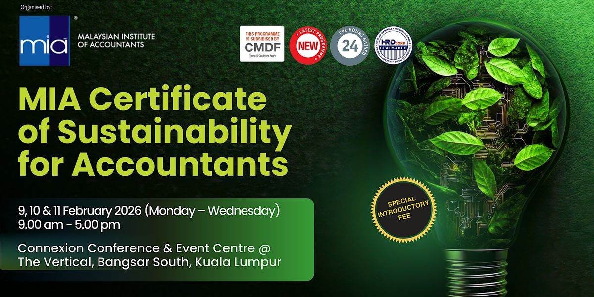 Sustainability is no longer optional, it is now integral to financial reporting, governance, and long-term value creation. The MIA Certificate of Sustainability for Accountants is a high-impact three-day programme designed to equip accountants and finance professionals with the essential knowledge and practical skills to meet evolving regulatory and stakeholder expectations, including IFRS S1, IFRS S2, and the National Sustainability Reporting Framework (NSRF).