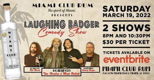Rodney Badger presents the Laughing Badger Comedy Show! Rodney is part of the very successful nationally touring Dirty Laundry Comedy Tour and he is bringing the funniest comics to the Miami Rum Club. This show will highlight some of Florida's and the countries funniest comedians. Rodney will perform and produce a hilarious night of comedy. Every show will be unique and full of laughs. Each comic will bringing their own style of comedy where no topic is off limits. (Adult Themed Show)