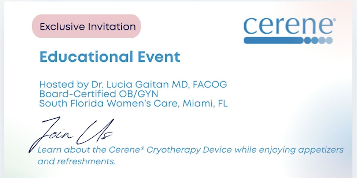 Learn about the Cerene® Cryotherapy Device while enjoying appetizers and refreshments.