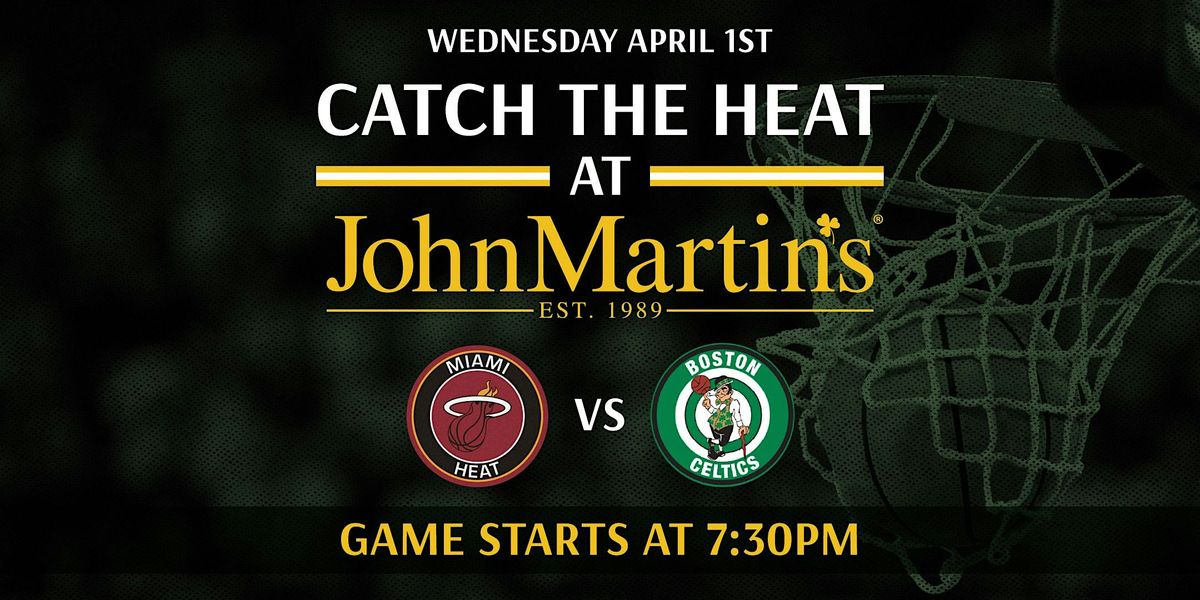 Join us Wednesday, April 1st, for a high-energy NBA showdown as the Miami Heat take on the Boston Celtics, live at John Martin’s.