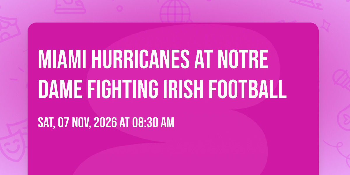 📍 Location: 41.6971, -86.2326🌟 Step into a world of wonder at Miami Hurricanes at Notre Dame Fighting Irish Football, where extraordinary moments await! 🏛️ Located at Notre Dame Stadium in dynamic Notre Dame, IN, this event will become the talk of the town. 📅 Join us on November 7th, 2026 at 08:30 AM for a celebration that defies the ordinary. ✨ This curated experience brings together the best of entertainment, culture, and community spirit. Every detail has been thoughtfully planned to ensure an unforgettable experience for all our guests. 🎯 Take advantage of this opportunity to be part of something special. 🎊 Early registration is recommended as space is limited!
