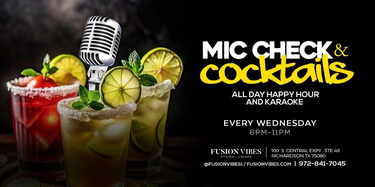 MIC CHECK & COCKTAILS-KARAOKE + ALL DAY HAPPY HOURS - EVERY WEDNESDAY