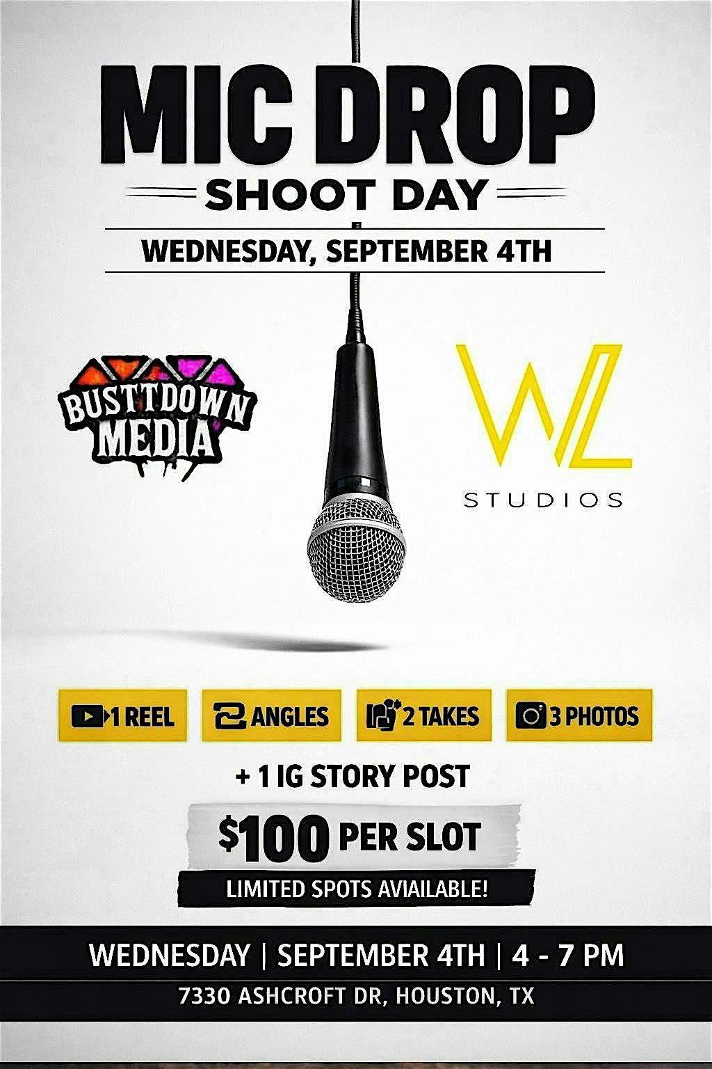 On Friday the 27th at 4PM, we’re bringing artists and creators together for a curated Mic Drop Shoot Day featuring a clean white backdrop concept designed to capture bold performance visuals.