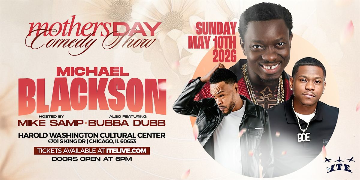 Join us in person for the MICHAEL BLACKSON & BUBBA DUBB MOTHERS DAY COMEDY SHOW. This is the perfect way to celebrate Mom with a night full of hilarious moments and top-notch comedy. Grab your friends and family, and come enjoy an unforgettable evening of fun, jokes, and good vibes!