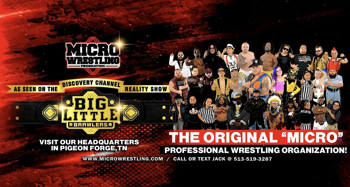 Our reality show "Big Little Brawlers" aired on the Discovery Channel on January 9, 2024 at 10pm; you can watch episodes on Discovery, Discovery Plus, and Max. The Micro Wrestlers have been featured in Sports Illustrated Magazine, Country Music Television, and the WWE. There is no denying that the Micro Wrestling Federation is the number one Little Person wrestling organization on the planet - high-flying, body slamming, and off the top rope!