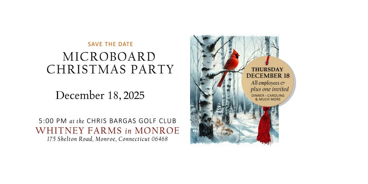 Join us for Microboard's 2025 Holiday Party! Celebrate the season with an evening of delicious food, great company, and festive cheer at Whitney Farms. The event will take place on Thursday, December 18th, from 5:00 p.m. to 9:00 p.m. Enjoy a buffet-style dinner, one complimentary drink, and access to a cash bar. This is a wonderful opportunity to unwind and connect with your colleagues as we close out another successful year.