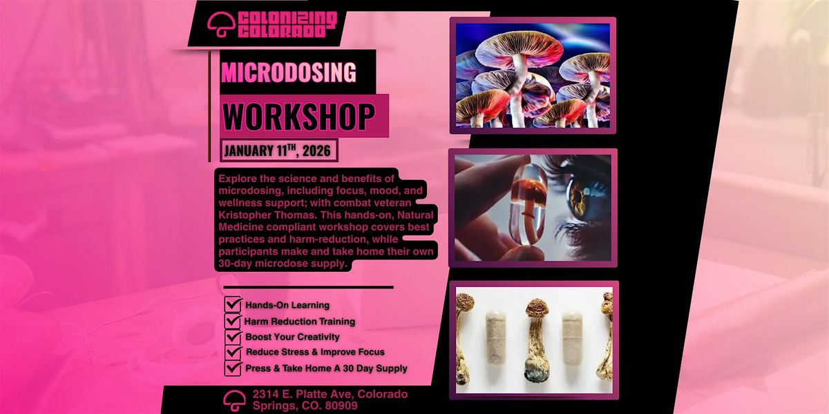 Microdosing Mushrooms for Health & Wellness is a 21+ educational workshop hosted by Colonizing Colorado LLC, created for adults who want real knowledge, real practice, and a real finished batch they can take home and use responsibly.