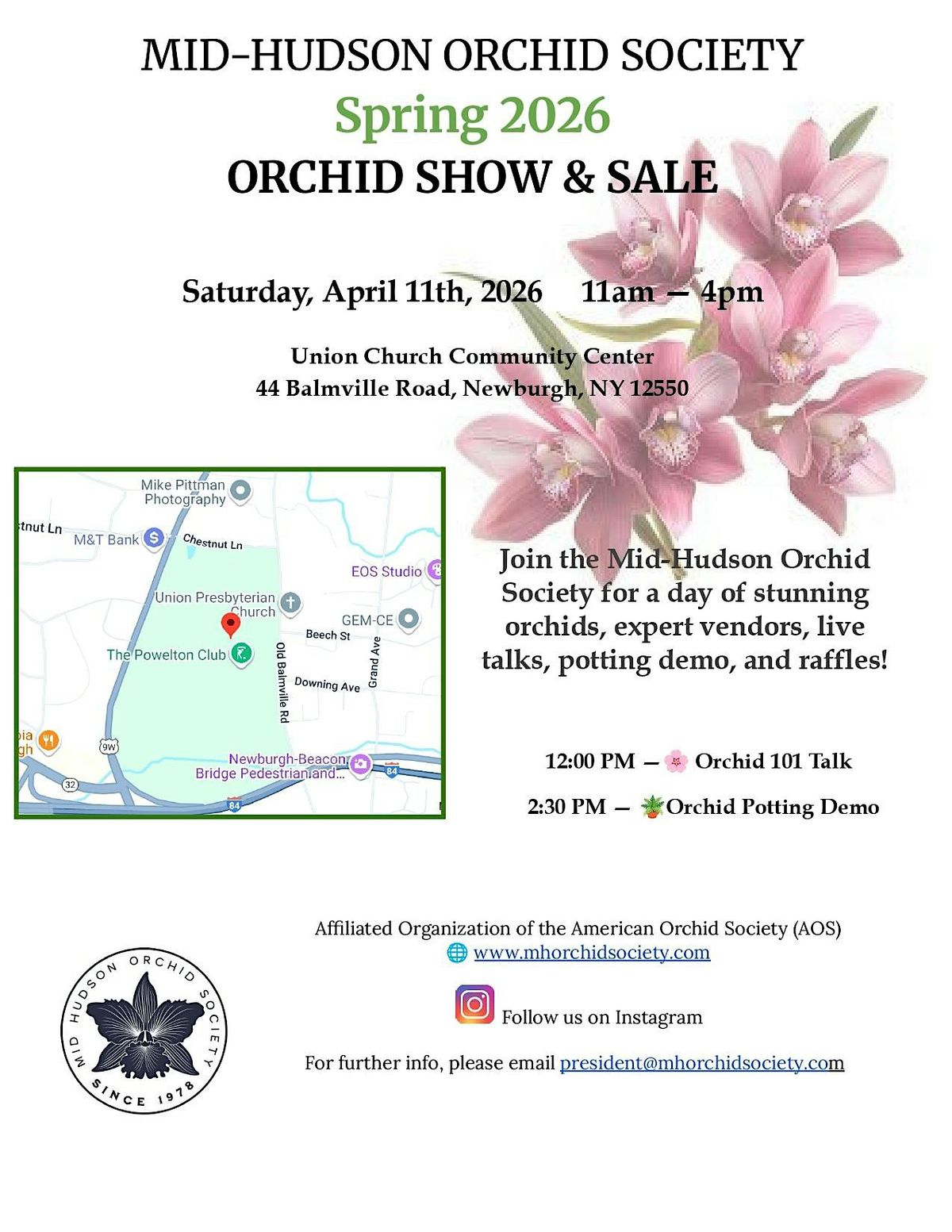 Join the Mid Hudson Orchid Society for our Spring 2026 Orchid Show & Sale on Saturday, April 11, 2026!