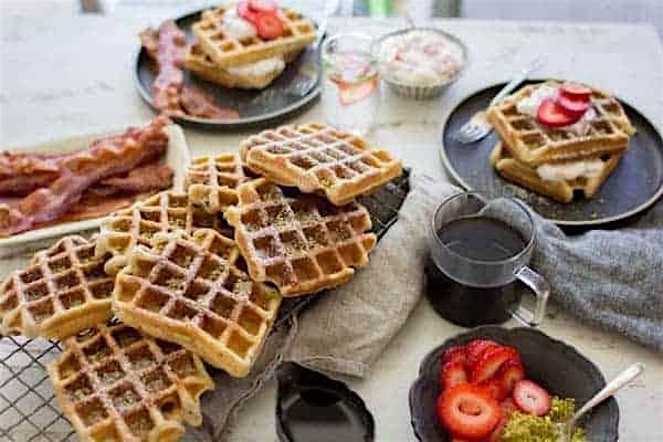 Treat yourself this morning! Enjoy warm, delicious waffles with toppings and sweet delights.