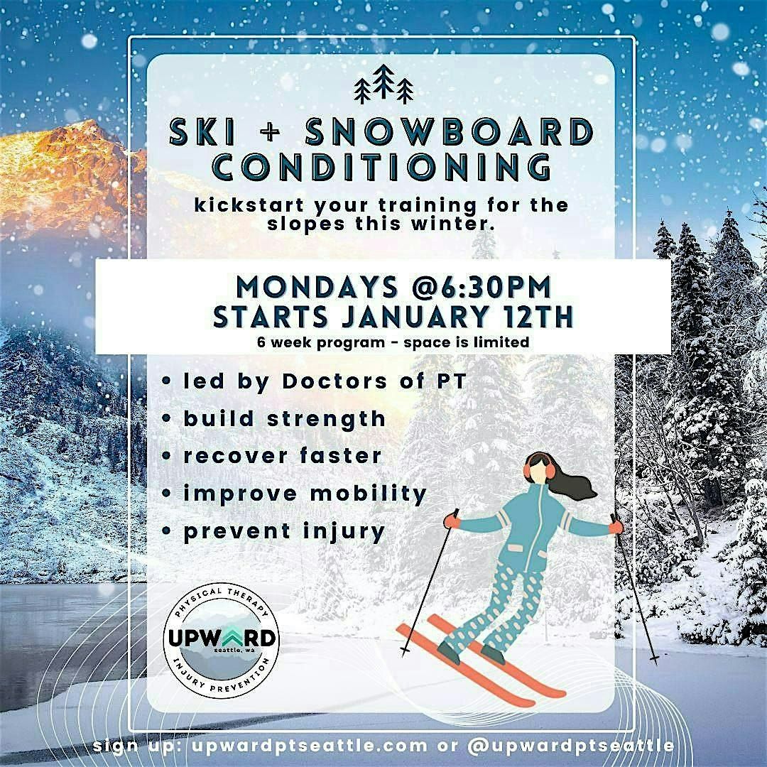 Join the Doctors of Physical Therapy at Upward PT for our 6-week Mid-Season Ski & Snowboard Conditioning Program, designed to help you stay powerful, injury-free, and confident as you take on the rest of the winter.