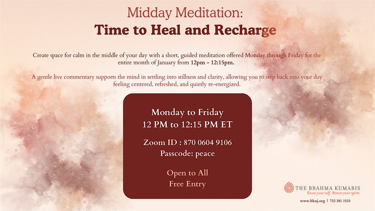 Create space for calm in the middle of your day with a short, guided meditation offered Monday through Friday for the entire month of January from 12pm - 12:15pm.