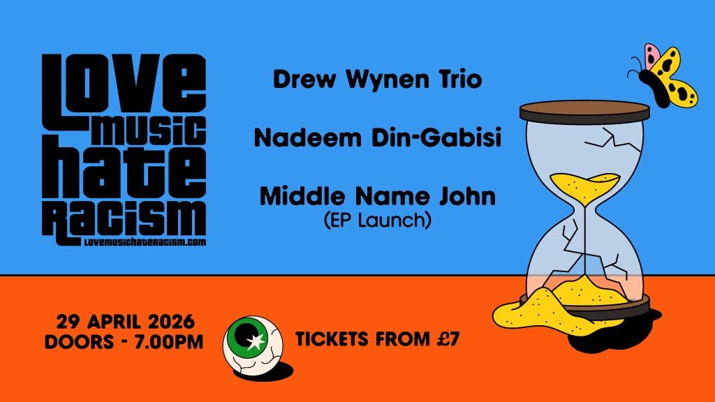 Middle Name John is throwing an EP Release Party for 'is it the bills?'. Expect a full band set of in-your-face glitch & groove with some lyrical madness on top. Also performing on the night will be the world class guitarist and writer, Drew Wynen, with his trio. You can also expect a solo set from the widely acclaimed poet and performance artist, Nadeem Din Gabisi. His sets take you on a journey through beats and lyrical mastery. As this gig is a week before the by-elections all of the artists are happy to perform for Love Music Hate Racism as we say 'no reform'. Come enjoy a night of boundary pushing and groovy in unity, against division.Disclaimer: